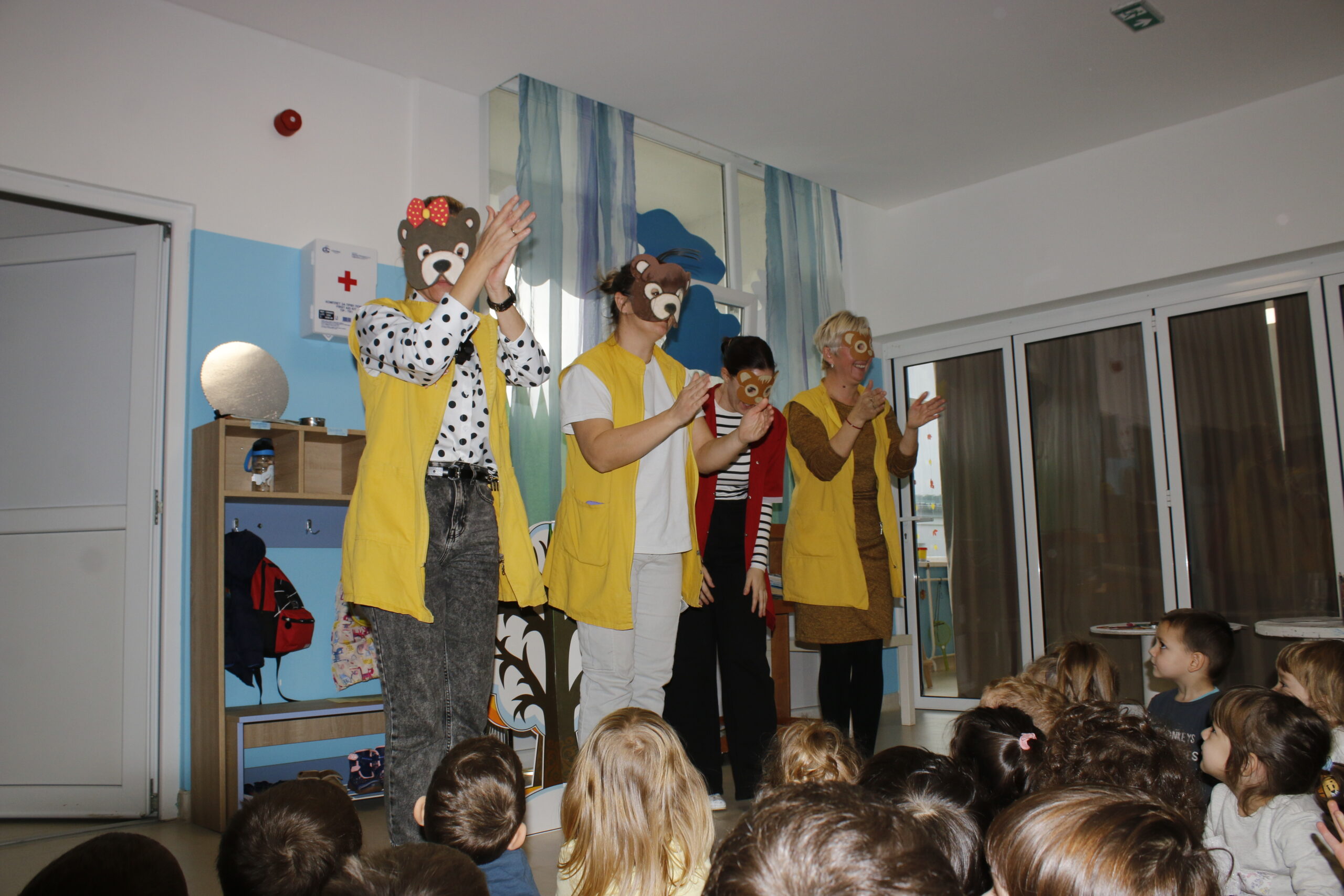 У то име, млади и креативни тим васпитача и медицинских сестара васпитача извео је луткарску представу „Три прасета“ за сву децу вртића. Мало је рећи да су деца уживала у представи, која је била прави спектакл испуњен смехом, радошћу и забавом.