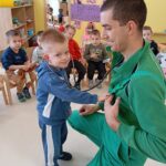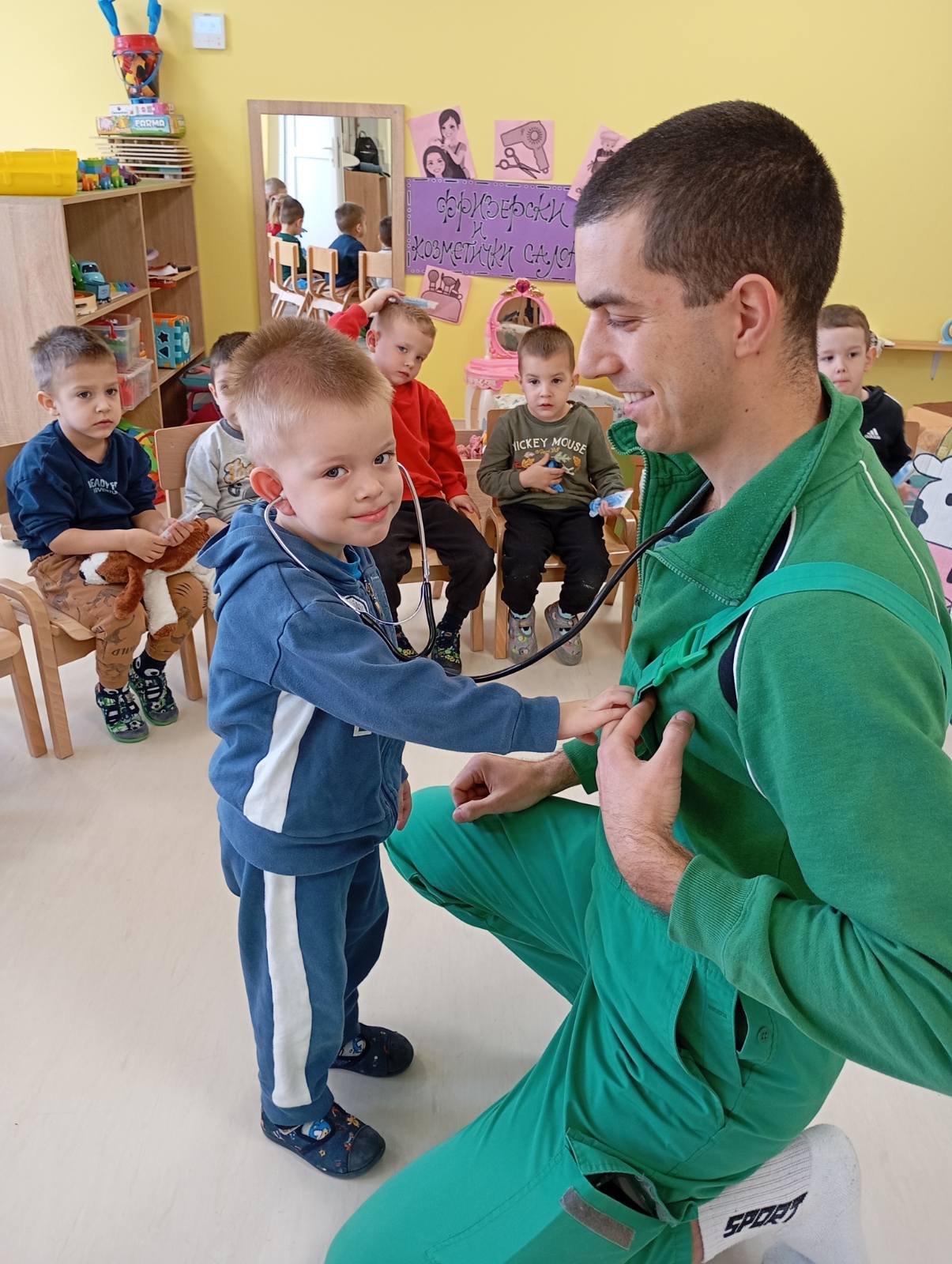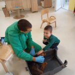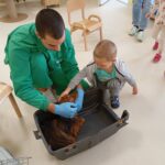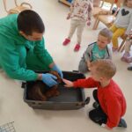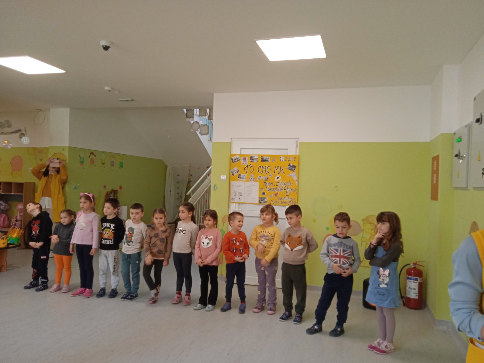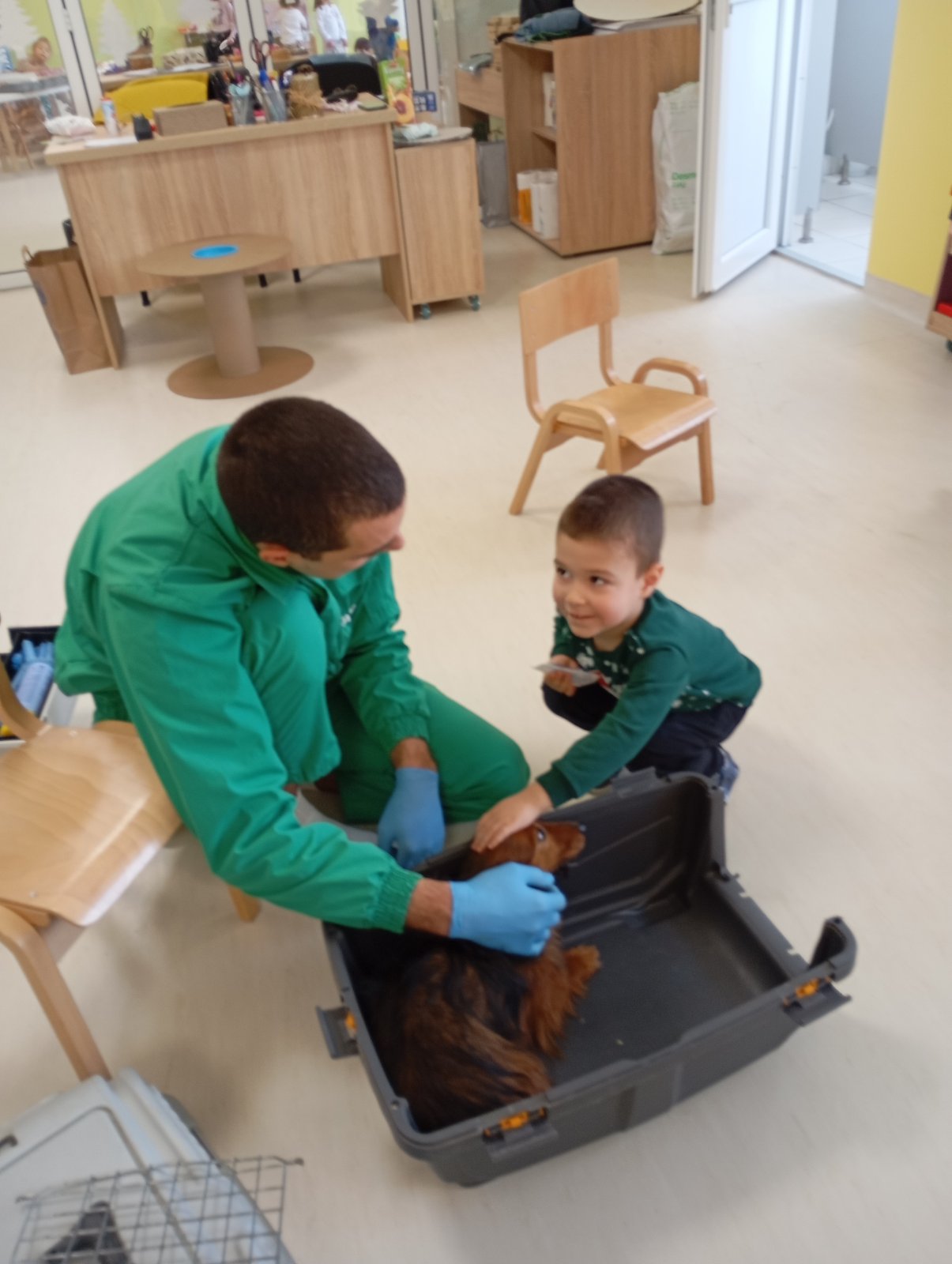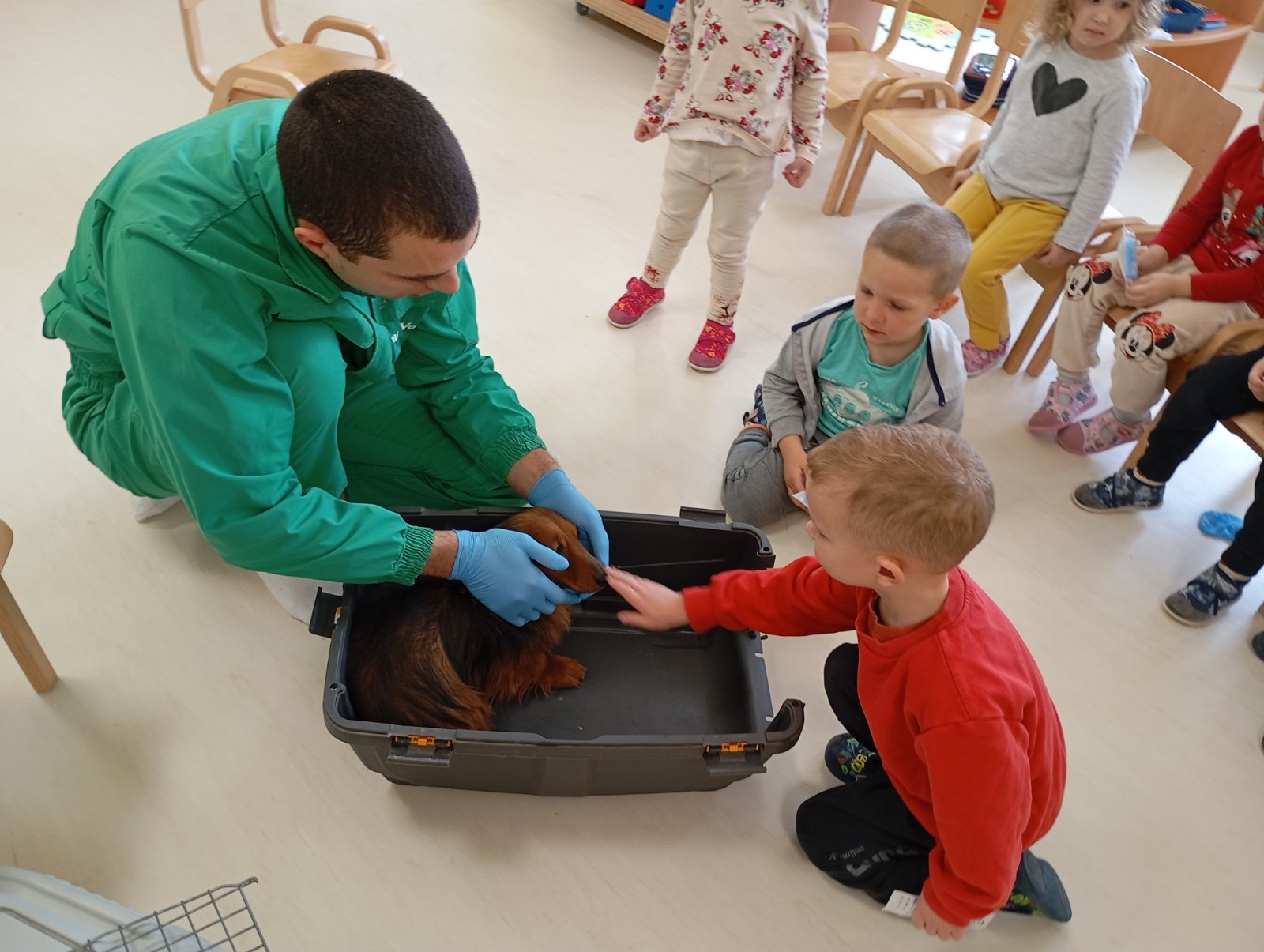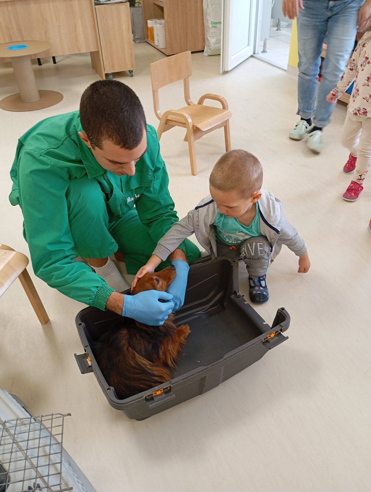 У оквиру пројекта „Домаће животиње“, који се реализује у нашој установи, у посети Првој млађој групи био је ветеринар А.Д. који је децу упознао са својим послом и животом животиња. Он је донео са собом куце које су, уз одобрење ветеринара, деца могла да мазе и играју се са њима. Овај сусрет је био веома занимљив и едукативан, јер су деца имала прилику да се ближе упознају са његовом професијом и важностима правилне неге и односа према животињама. Деца су била изненађена и одушевљена, а ова активност је додала посебну чар и радост свима.