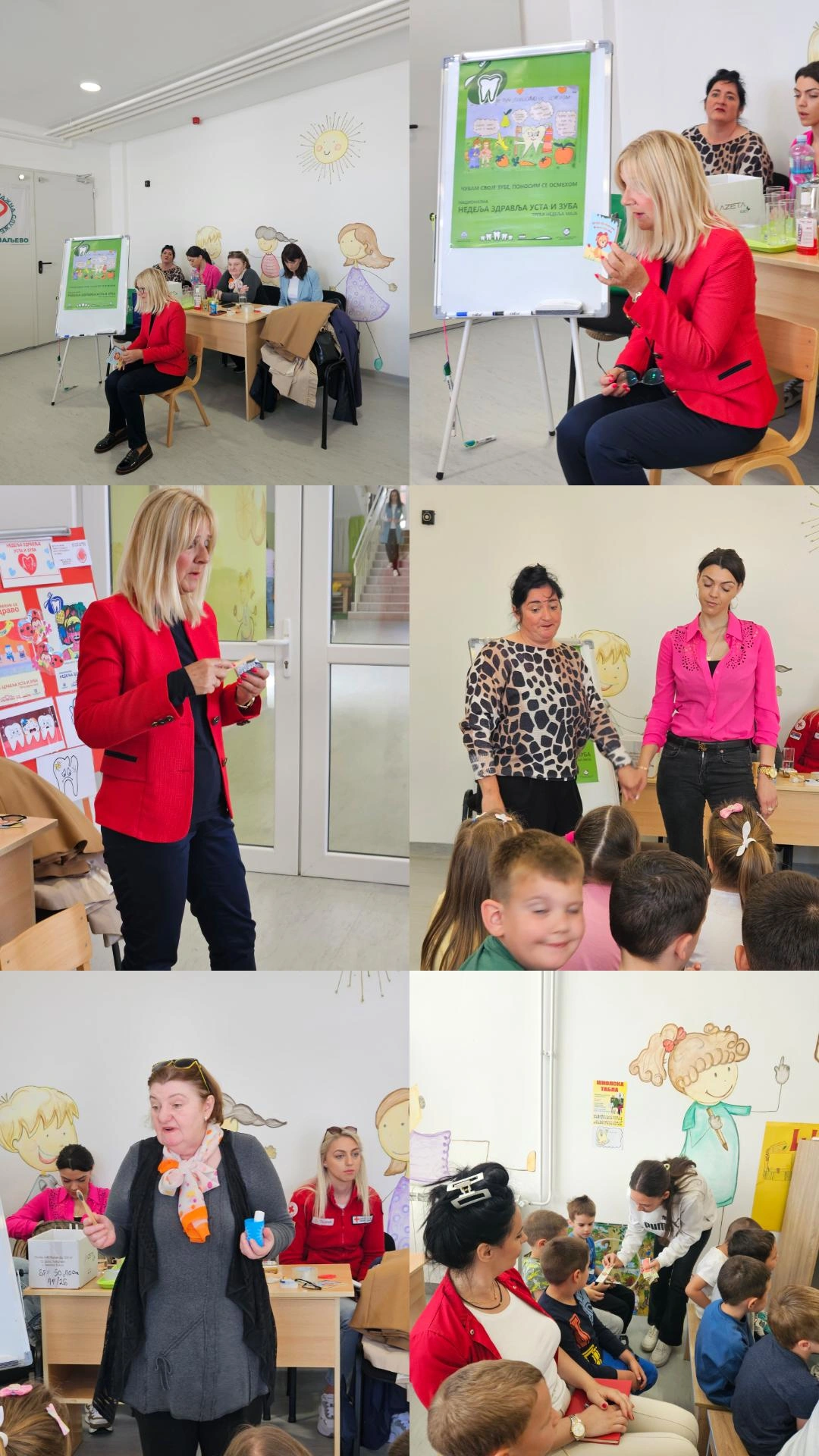 Том приликом, одржано је предавање предавача са Стоматолошке службе, као и патронажних сестара, које су кроз разговор, слике и практичне примере приближиле деци важност редовне и правилне хигијене уста и зуба.